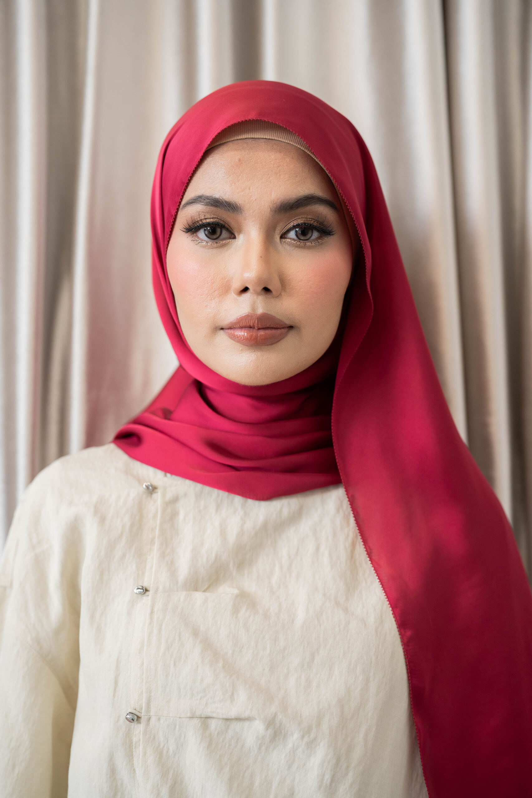 Crafted from satin silk and finished with our signature eyelash edges, this piece is designed for those who appreciate fluid drapes and luminous movement, gliding effortlessly with every step.